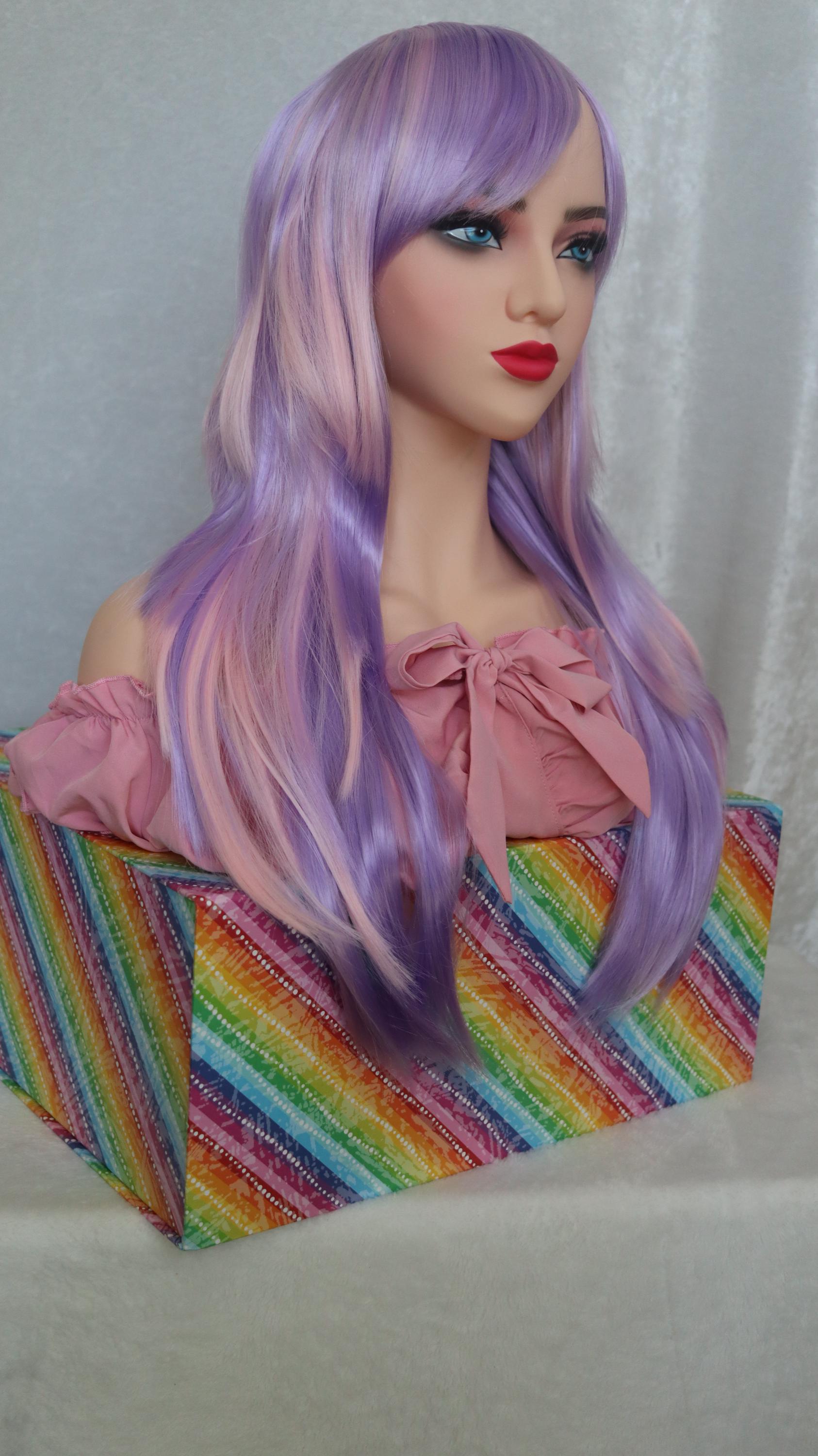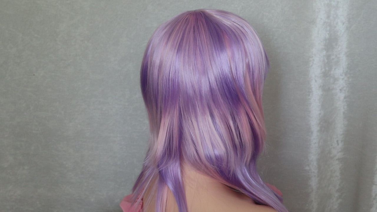 Pastel Goth Layered Wig – 26” Edgy Choppy Cut with Lavender Bangs & Pink + Purple Tones – Cosplay, Festival, Alt Fashion
