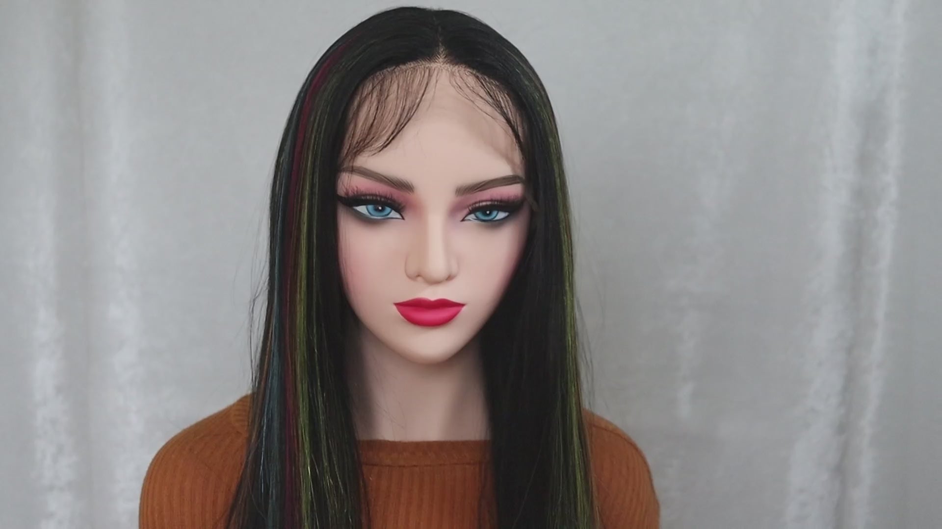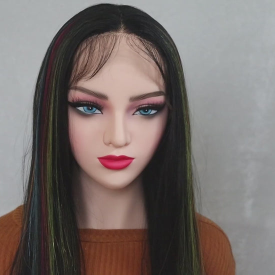 Rainbow Highway T-Part Lace Wig – 20 inches Black Wig with Vibrant Front Highlights | Glueless, Lightweight & Easy to Style