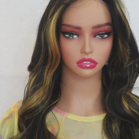 Tracking Provided: You’ll receive a tracking number to monitor your package as it ships. This romantic dark brown wavy wig with yellow highlights adds elegance, beauty, and versatility to any style, perfect for making a statement or enhancing your natural beauty.